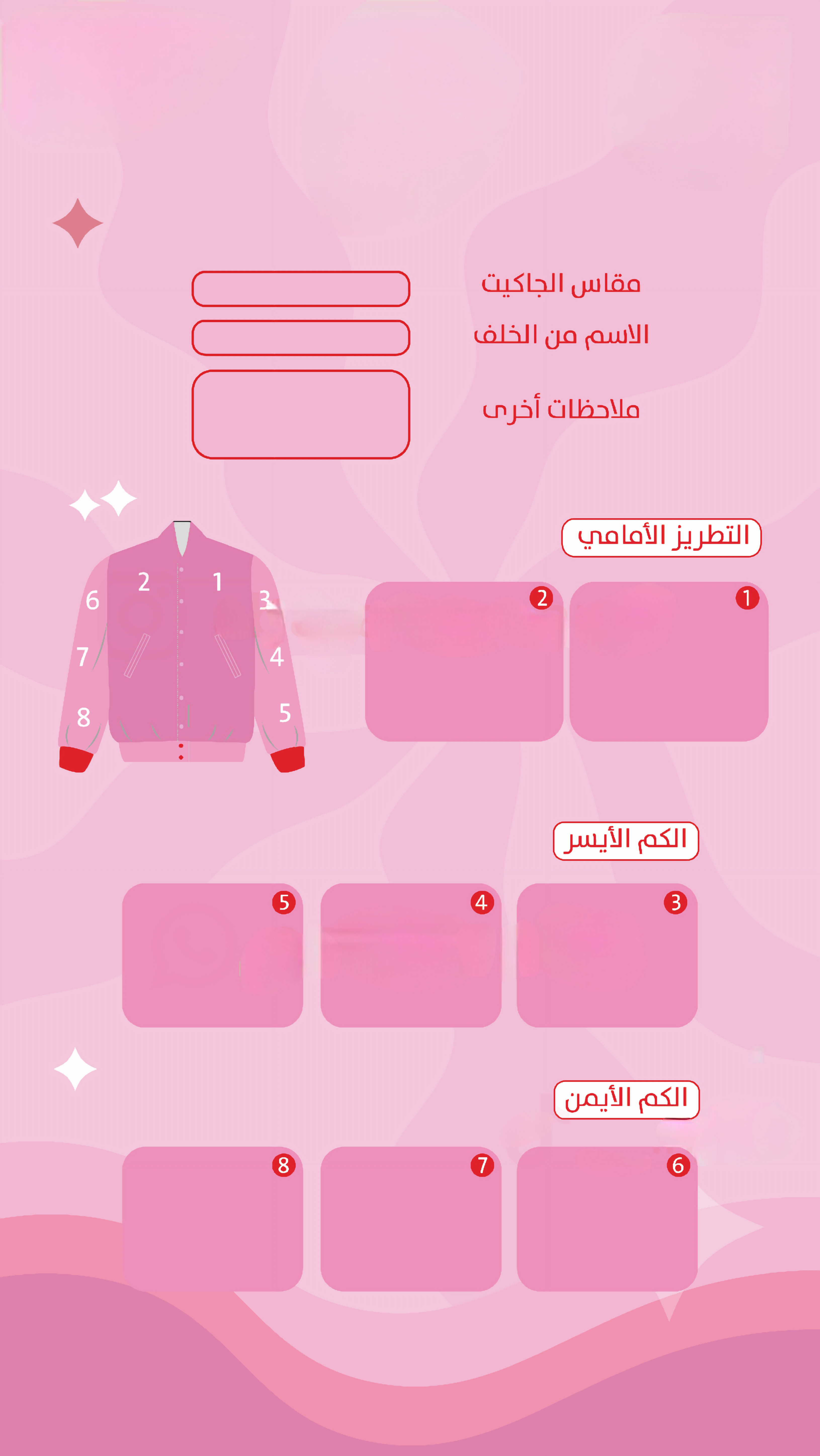 السعر شامل ٢ باتش ف كل كم واضافه امام و اضافه خلف يمكنك اضافه زياده اختر ف اي جهه عندك الخيار يمكنك اختيار اللون والتصميم حسب طلبك عي نموذج الطلب ف الفورمات ثم ارفقها المقاسات حسب طلبك