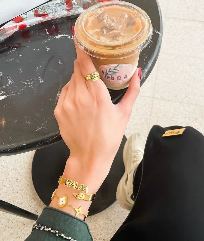 خاتم ب الاسم + اسواره بالاسم منحوت